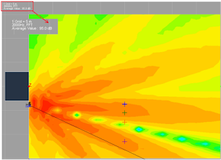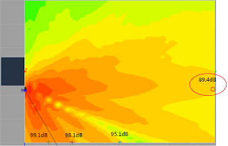 調整後雖然外側喇叭Gain降低11.2dB,但實際對場地的平均音壓僅減少1.7dB,重要的是音壓平均度從±5.6dB變成±4.7dB,而且場地末端與側邊四個量測點,最大、最小音壓誤差從3.9dB降低到2dB,不僅可以改善側邊外溢音壓,而且讓場地內平均度更好。